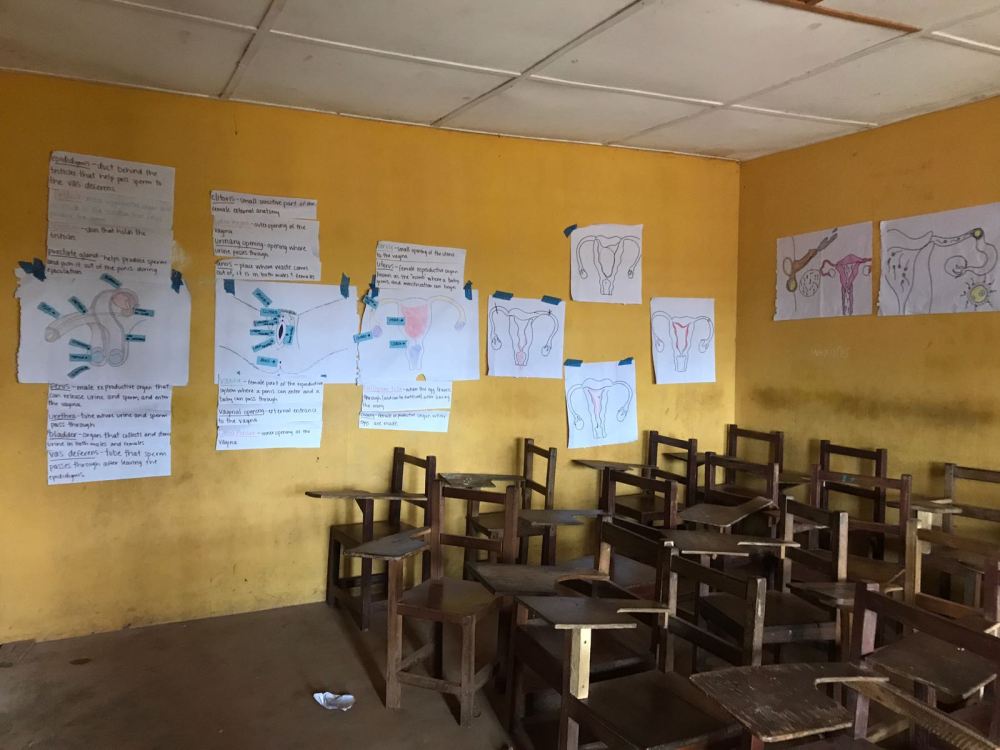 In addition to our math and science classes, we also had a few days for special topics. The first was Youth Sexual Reproductive Health Day, where we discussed anatomy, sex & pregnancy, menstruation and family planning – topics that are not covered in the Liberian curriculum so many of the students had never been exposed to them. We also had a day devoted to Malaria, which is a big issue in Liberia. We taught about the biology of malaria and how it is transmitted (a parasite that enters the blood via mosquito bites) and how it is spread (by mosquitos biting someone who has malaria and then biting someone else and passing it on). We also talked about prevention methods, the higher risk that pregnant women face and the economics of malaria (it’s much more cost effective to sleep under a mosquito net at night than have to pay for treatment when you get malaria!).