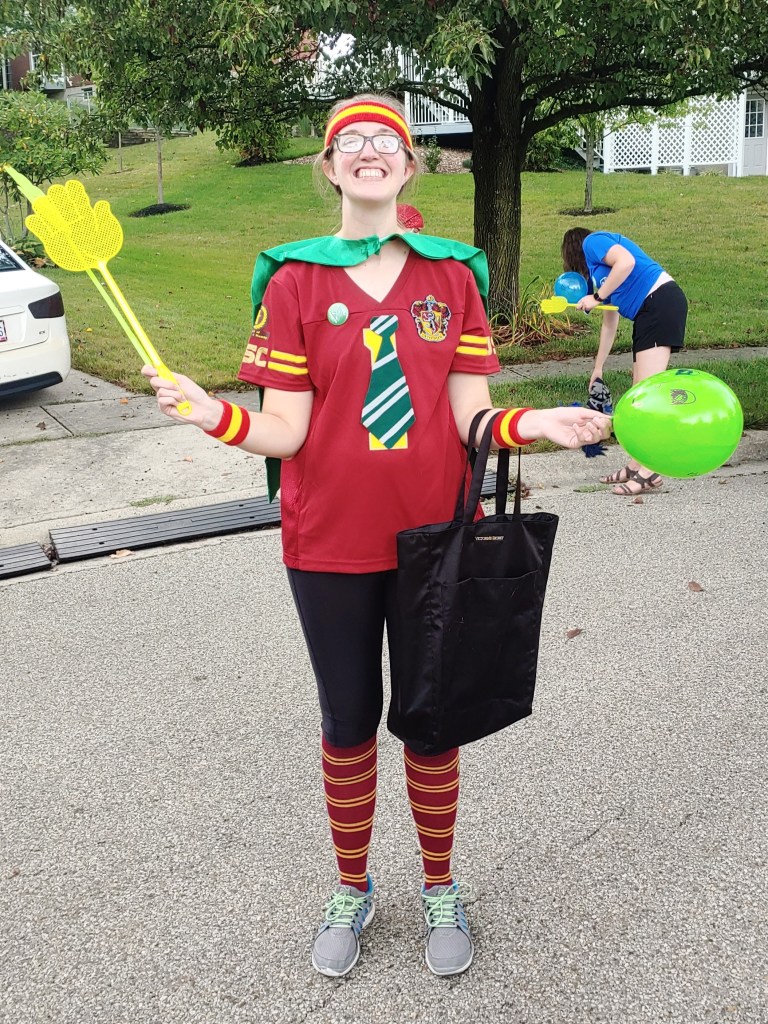 For this activity, each participant had their balloon and a fly swatter. The goal was to keep your balloon in the air only using your fly swatter (no limbs!). Once your balloon hits the ground you are out! You are trying to be the last balloon in the air while also trying to knock your opponents’ balloons out. The last person with their balloon in the air earns points for their house!